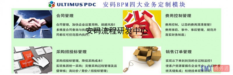 Ultimus流程化管理软件产品——企业门户管理系统、流程化预算费控管理系统、流程化采购招投标管理系统、流程化合同管理系统、流程化销售订单管理系统、流程化行政管理系统,及项目管理,系统对接集成等。