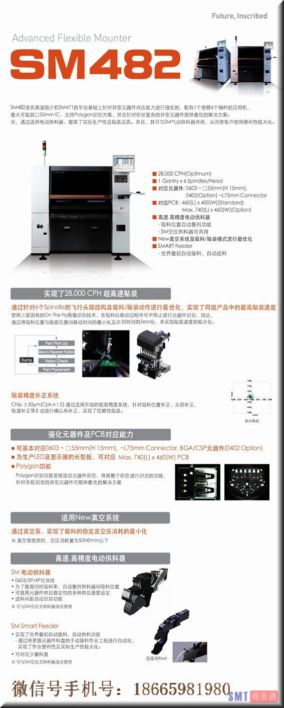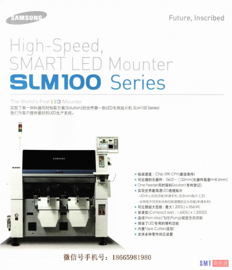 现有SM系列:SLM110, SLM120型LED专用贴片机.