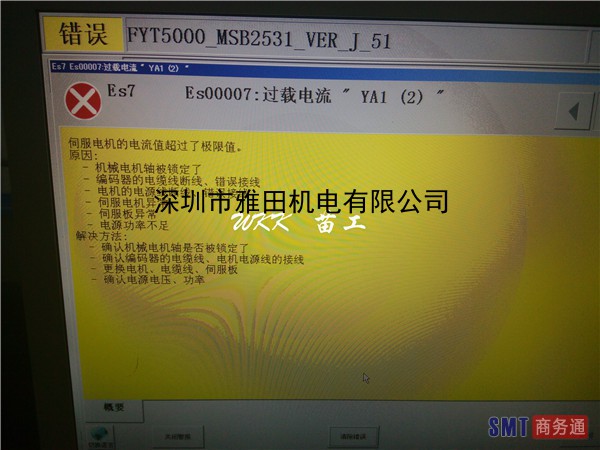 YAMAHA贴片机 各类报警快速维修-过载电流